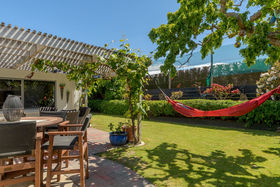 The kitchen boasts a modern oven and rangehood, complemented by retrofitted double glazing in the kitchen, lounge, and master bedroom for comfort all year round. Sliding doors in the lounge and kitchen have also been double-glazed.